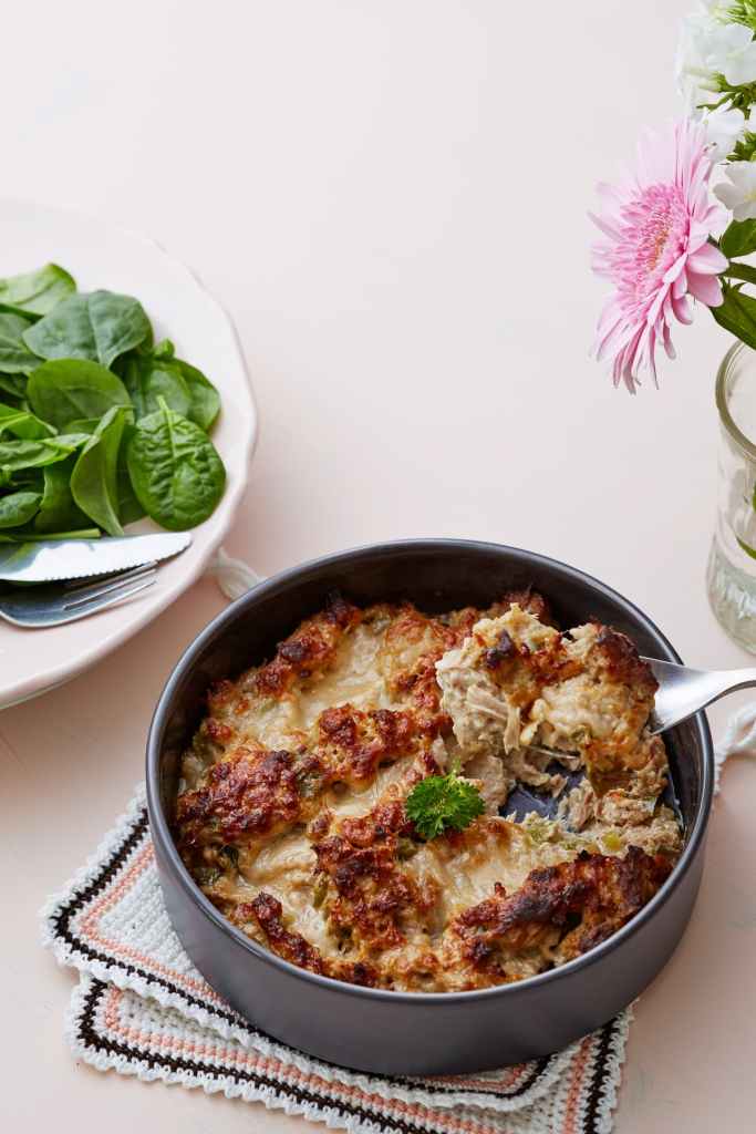- In a bowl, mix together tuna, mayonnaise, parmesan and chili flakes until well combined
